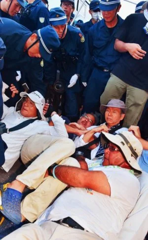 わずかに居残り、車のレッカー移動の根拠を追及した男性が、機動隊員に問答無用で排除された。私たちマスコミも何度も出されかけた。取材中だと説明して残れたが、誰がこの場にいて良くて誰が駄目なのか、全ては県警が決めた。「彼らが勝手にルールを作っている。本土ではあり得ない」。国会前のデモを見守ってきた弁護士は言った。